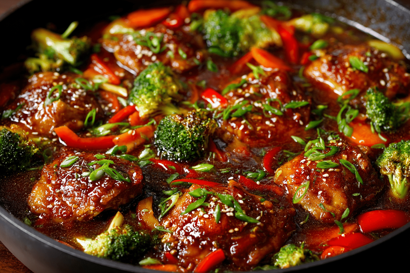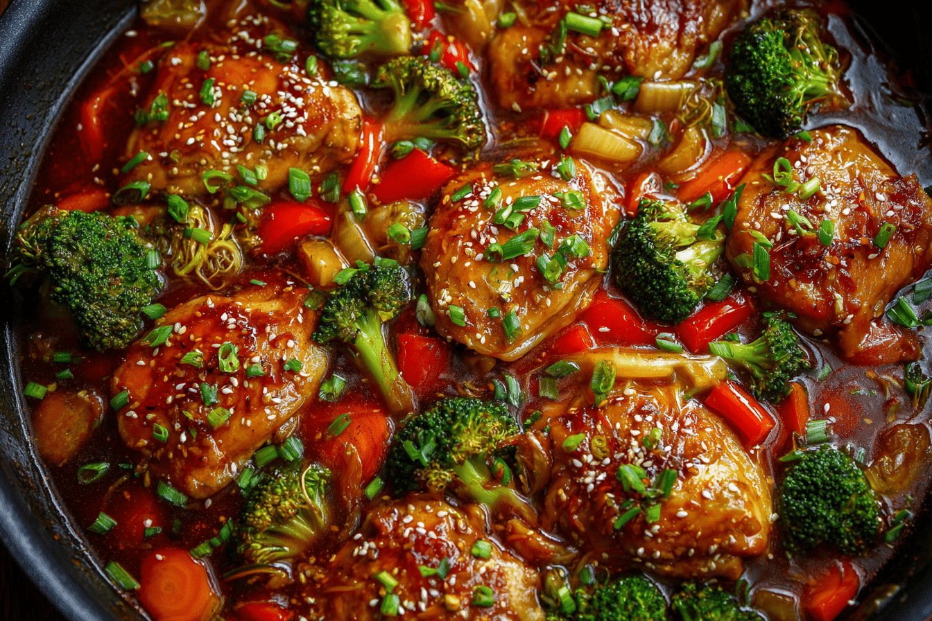 Slow cooking allows the ingredients to blend gradually while the chicken becomes fork-tender. The sauce thickens slightly during cooking, creating a glossy finish that pairs perfectly with steamed rice or noodles.
