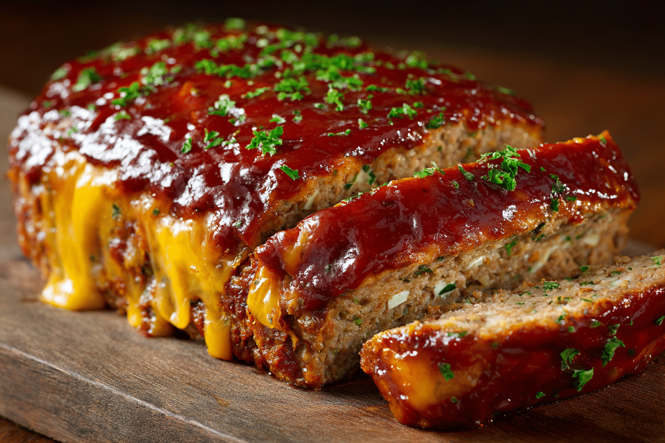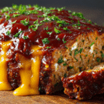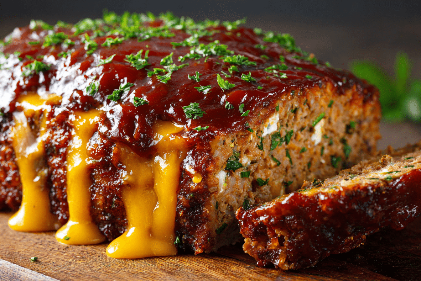 A juicy, flavorful meatloaf made with ground beef, cheddar cheese, and topped with a smoky BBQ glaze — the perfect twist on a comfort food classic.