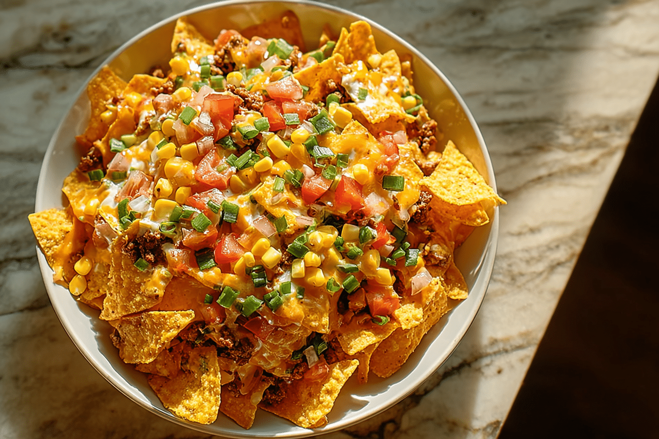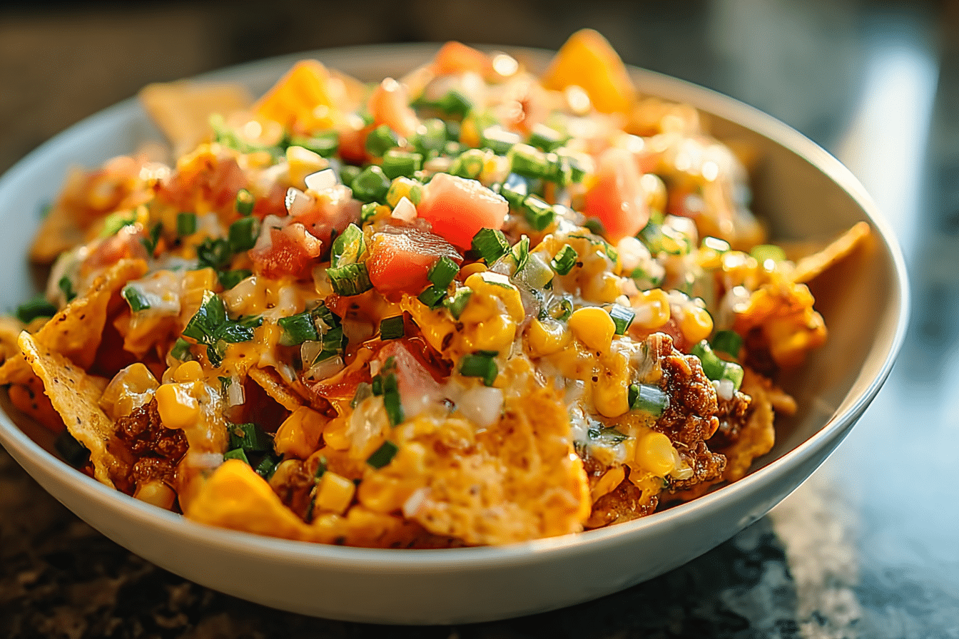 This recipe layers textures and flavors in a way that feels both comforting and exciting. The warm chili melts into the cheese, while the Fritos stay crisp enough to add that signature crunch. A light dressing and fresh toppings balance everything so each bite feels rich but not overwhelming.