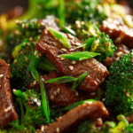 Beef and Broccoli Stir-Fry is a savory skillet dish featuring tender sliced beef and crisp broccoli coated in a glossy garlic ginger sauce.