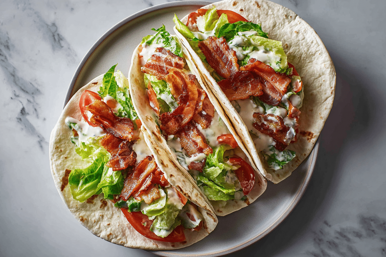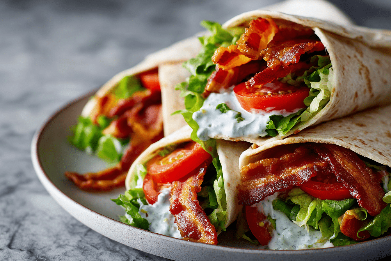 Tomatoes bring juiciness and natural sweetness. Ripe tomatoes are ideal because they balance the saltiness of the bacon and richness of the sauce. Slicing them thin helps prevent the wrap from becoming watery.