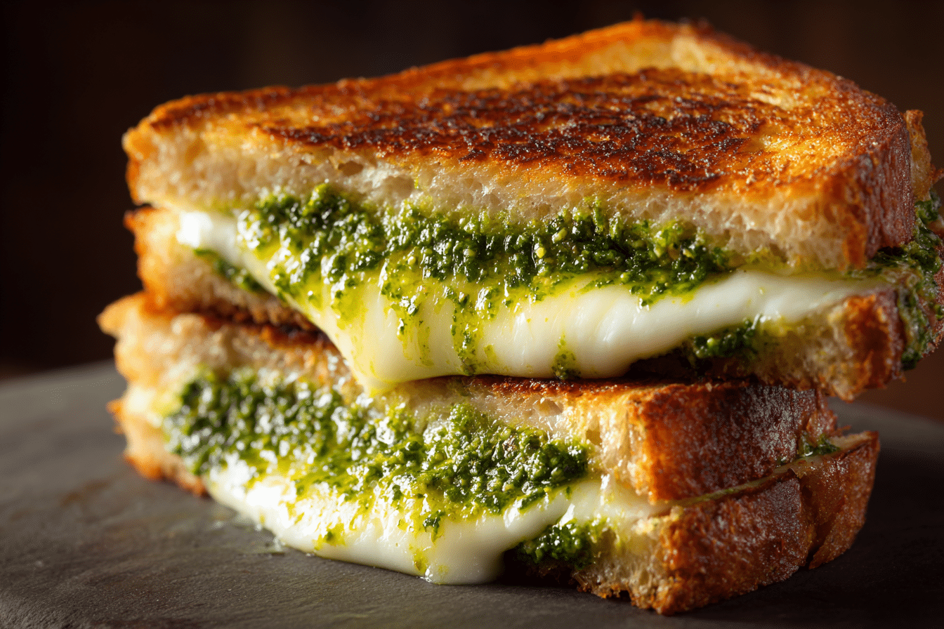 Freezing a fully cooked sandwich is not ideal because the texture of the bread can become soft once thawed. However, you can freeze pesto separately and thaw it as needed. If you wish to freeze assembled but uncooked sandwiches, wrap them tightly and cook directly from frozen over low heat, allowing extra time for the center to warm and melt properly.