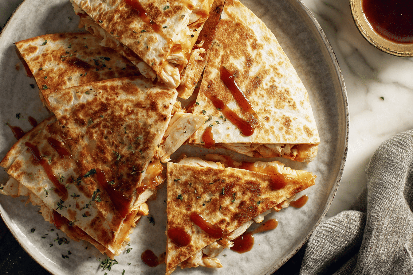 BBQ sauce adds depth with its smoky and tangy notes. Choose a thicker sauce so it coats the chicken evenly without making the quesadilla soggy.