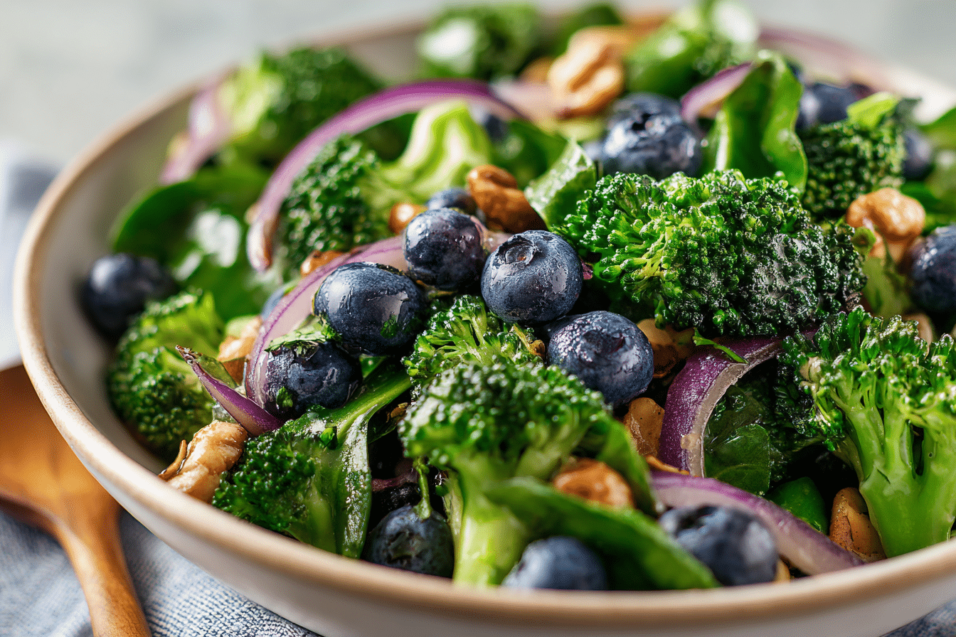 Blueberry Broccoli Spinach Salad is a refreshing combination of crisp greens, juicy berries, and crunchy textures that come together in a beautifully balanced dish. The natural sweetness of blueberries pairs effortlessly with the earthy bite of broccoli and the tender freshness of spinach, creating a salad that feels both light and satisfying.