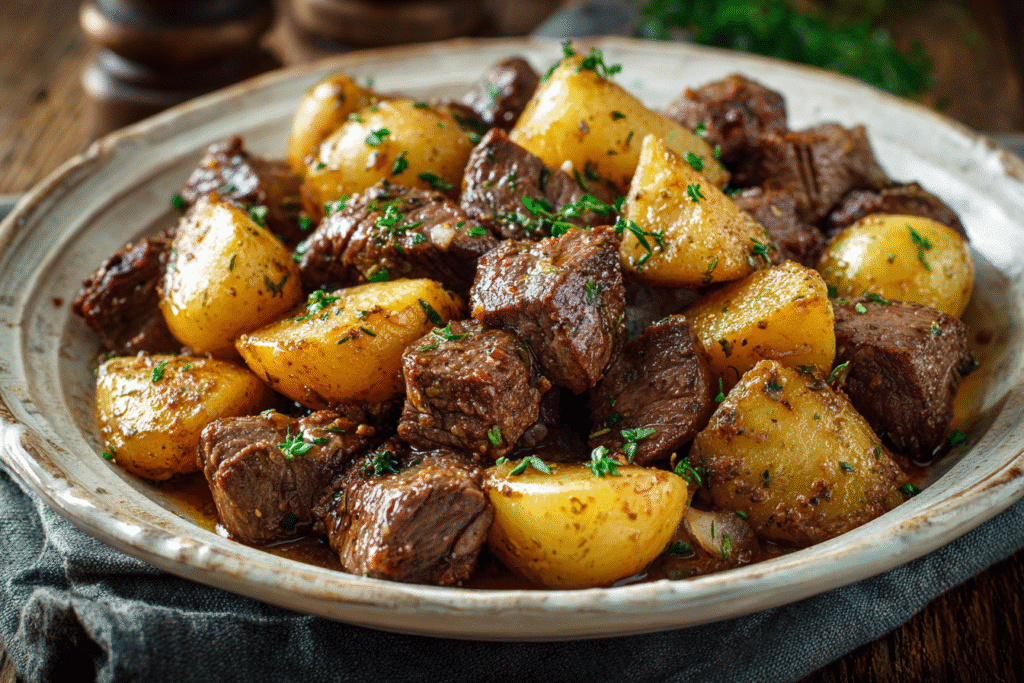 Garlic Butter Beef Bites with Potatoes is a comforting, crowd-pleasing dish that brings together tender seared beef, golden crispy potatoes, and a rich, garlicky butter sauce. It’s the kind of …