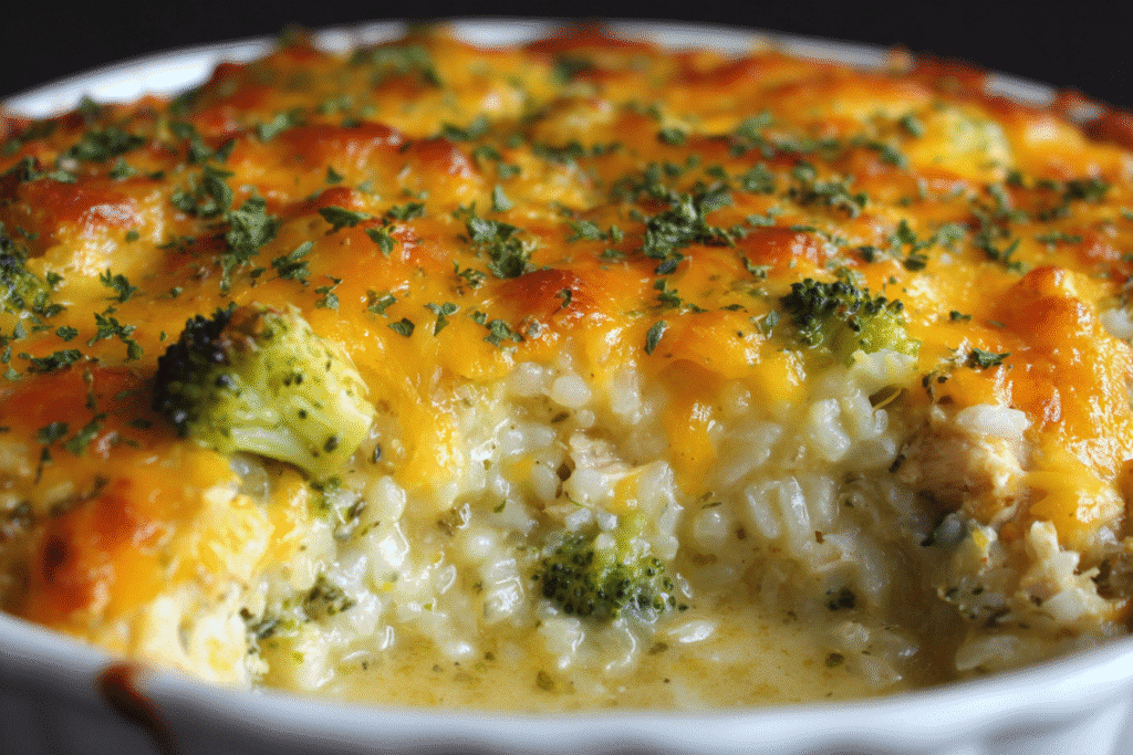 Creamy Chicken Broccoli Rice Cheese Casserole is the ultimate one-dish comfort meal — warm, hearty, and loaded with tender chicken, fluffy rice, crisp-tender broccoli, and a rich cheese sauce that …