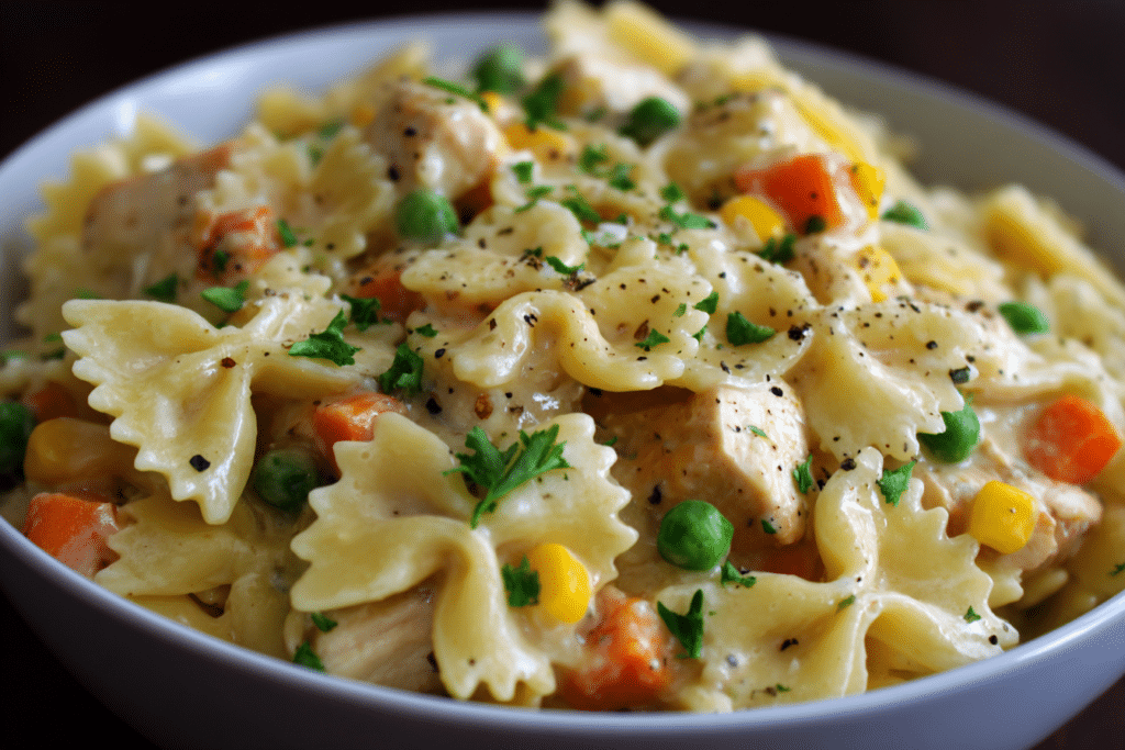 Chicken Pot Pie Pasta brings the nostalgic comfort of a classic chicken pot pie into a creamy, one-pot pasta dish. Imagine the rich, velvety filling of your favorite pot pie …