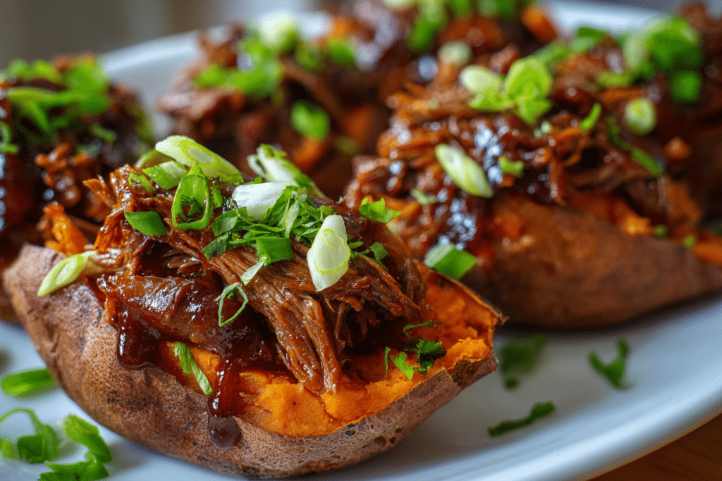 BBQ Beef Stuffed Sweet Potatoes bring together smoky, tender beef and naturally sweet, fluffy potatoes in one deeply satisfying dish. The contrast between savory barbecue sauce and the caramelized edges …