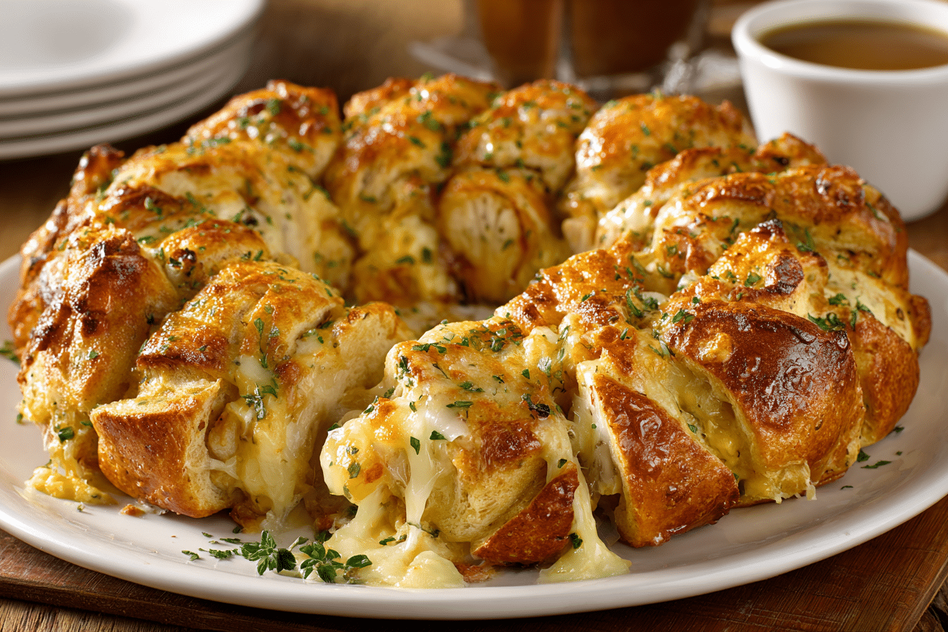 A savory breakfast ring packed with shredded chicken, melted cheese, and creamy filling wrapped in flaky biscuit dough. Easy to prepare and perfect for brunch or cozy mornings.