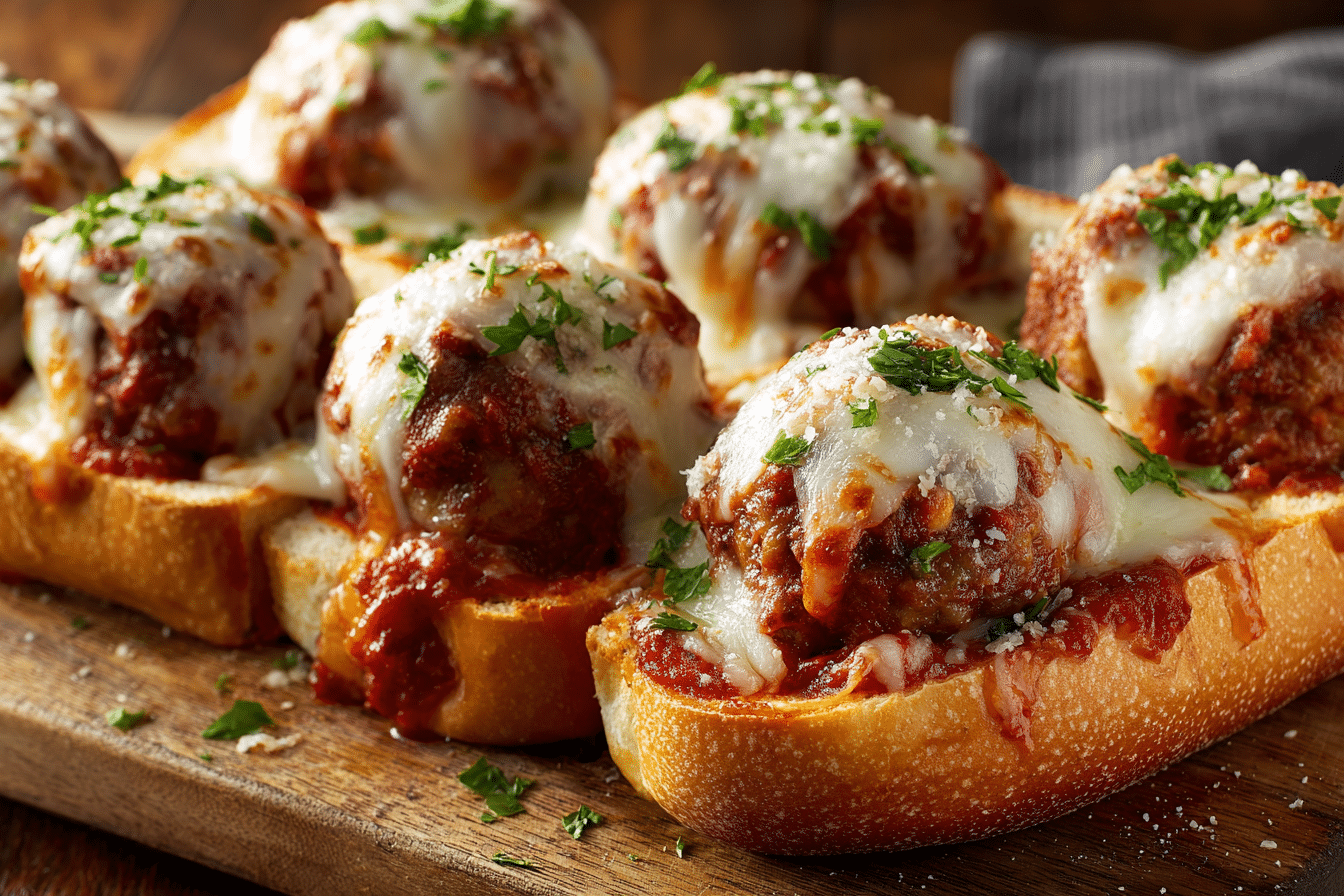 Tender homemade meatballs simmered in marinara sauce, topped with melted mozzarella, and tucked into toasted sub rolls for the ultimate cheesy meatball sub experience.