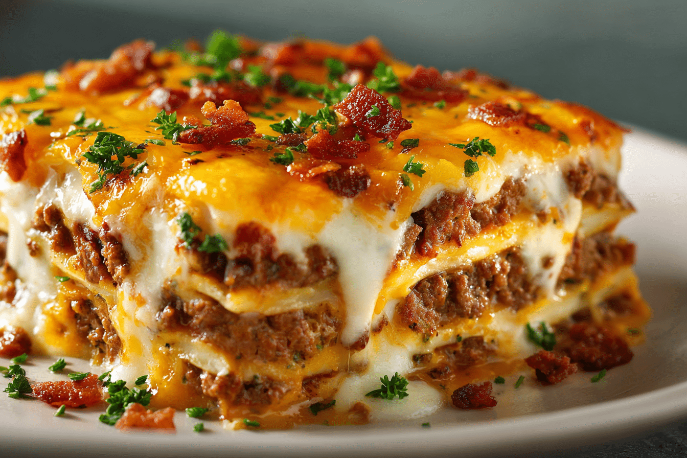 This casserole is rich and filling, offering protein from the meat and cheese, along with satisfying carbs from the potatoes. A standard serving provides around 400–500 calories, depending on portions and ingredients used.