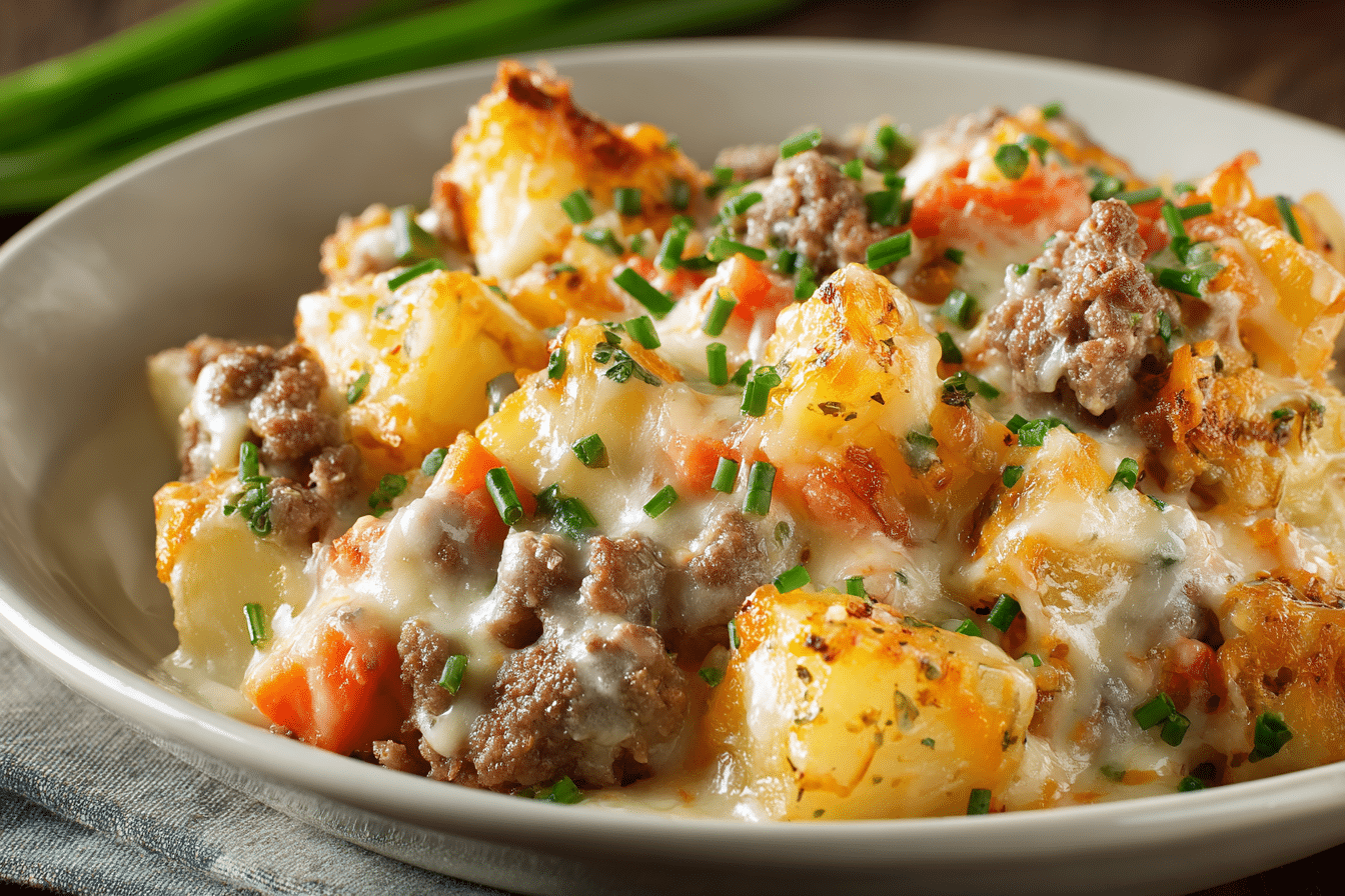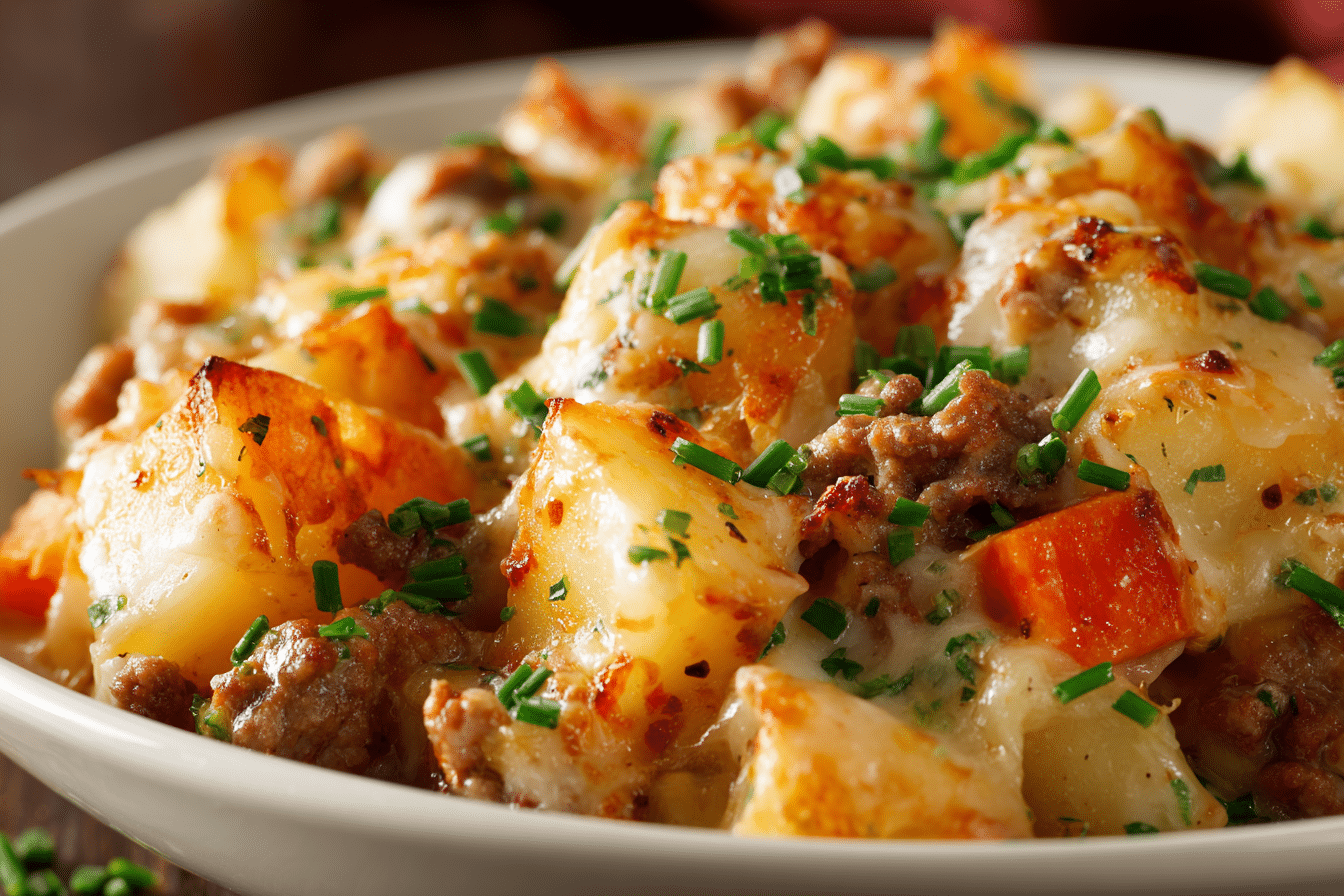 This dish brings together the best of comfort food — the crispy edges of skillet-fried potatoes, the savory richness of well-seasoned ground beef or sausage, and the creamy finish of bubbling cheddar or mozzarella on top. Think of it as a cross between loaded hash and shepherd’s pie, with less effort and more cheese.