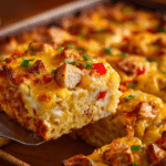 There’s something undeniably comforting about a breakfast that brings all your favorites together in one hearty, oven-baked dish. This Chicken, Egg & Hash Brown Breakfast Bake is just that—a satisfying, crowd-pleasing casserole layered with juicy chicken, crispy potatoes, tender eggs, and a rich duo of melted cheeses.