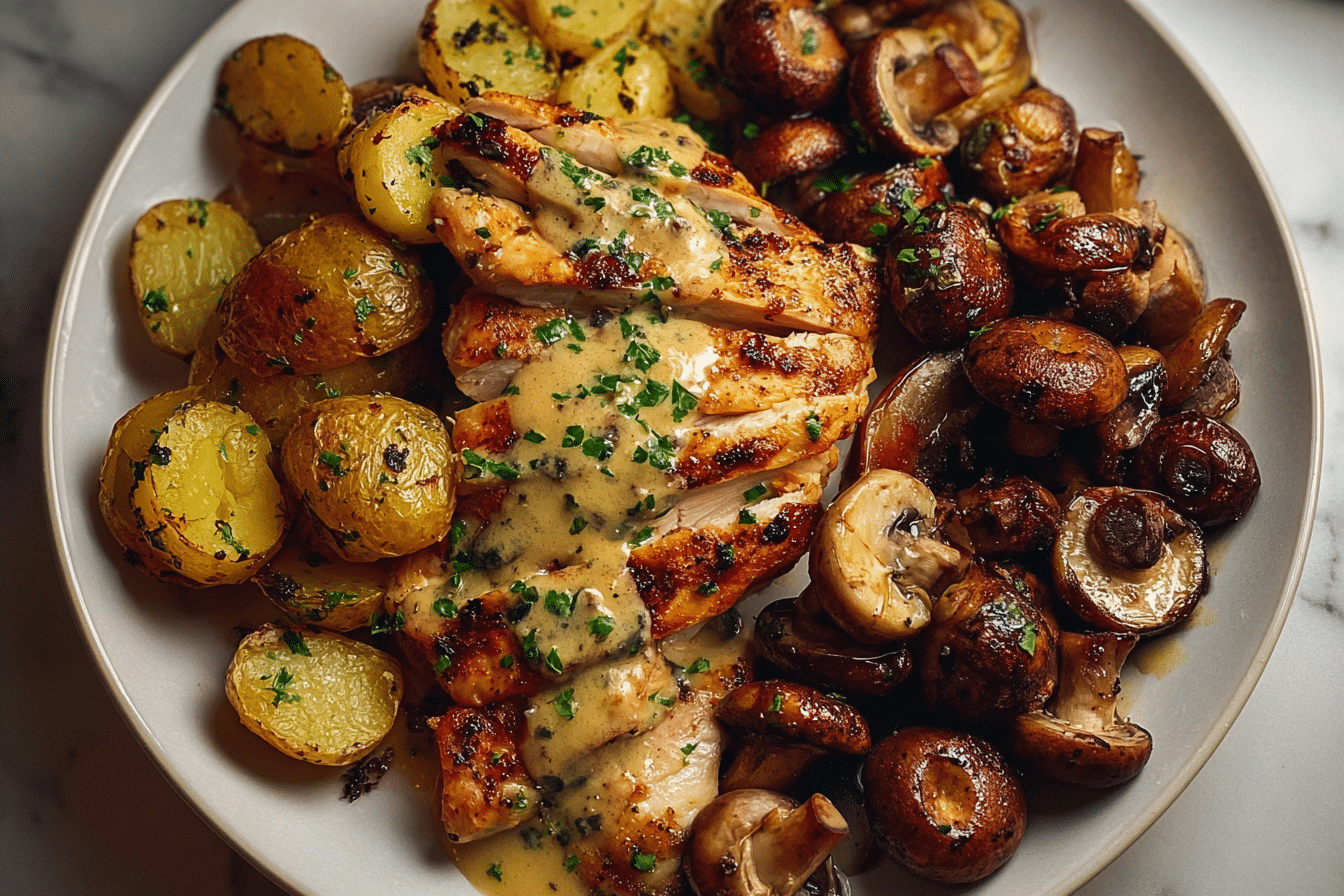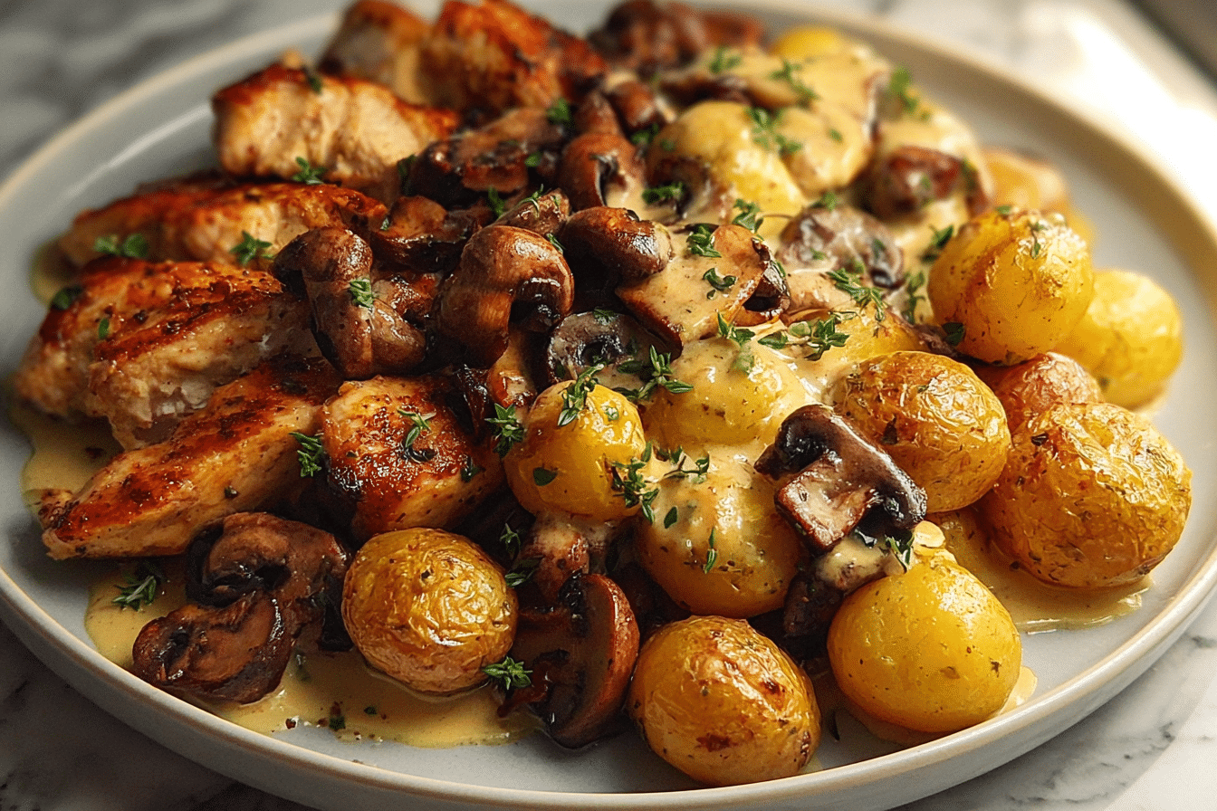 Chicken Mushrooms Potatoes Recipes combine tender chicken, savory mushrooms, and hearty potatoes in a simple, comforting one-pan meal.