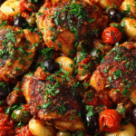 Chicken Puttanesca is a vibrant, rustic dish that brings together tender chicken and a punchy tomato sauce laced with olives, capers, garlic, and anchovies. Originating from Southern Italy — particularly Naples — the name “Puttanesca” refers to its bold, unapologetically savory flavor profile.