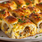 With tender scrambled eggs, savory chicken sausage, and melted cheese all nestled inside layers of buttery crescent roll dough, this breakfast bake offers both comfort and flavor in every slice. It’s rich without being heavy, flavorful without being complicated, and perfect for both quiet mornings and busy weekdays.