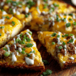 When you’re craving a breakfast that feels hearty and indulgent, yet simple to make, this Chicken Sausage Hash Brown Breakfast Pizza is the ultimate answer. It brings together all the best elements of a classic morning meal—crispy potatoes, savory sausage, creamy eggs, and melted cheese—in the form of a rustic breakfast pizza.