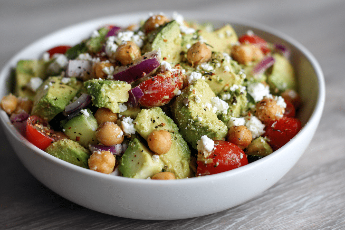 Chickpea Feta Avocado Salad offers a balanced combination of plant-based protein, fiber, and healthy fats. Chickpeas provide protein and complex carbohydrates that support steady energy levels throughout the day.