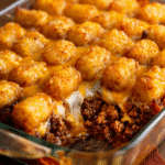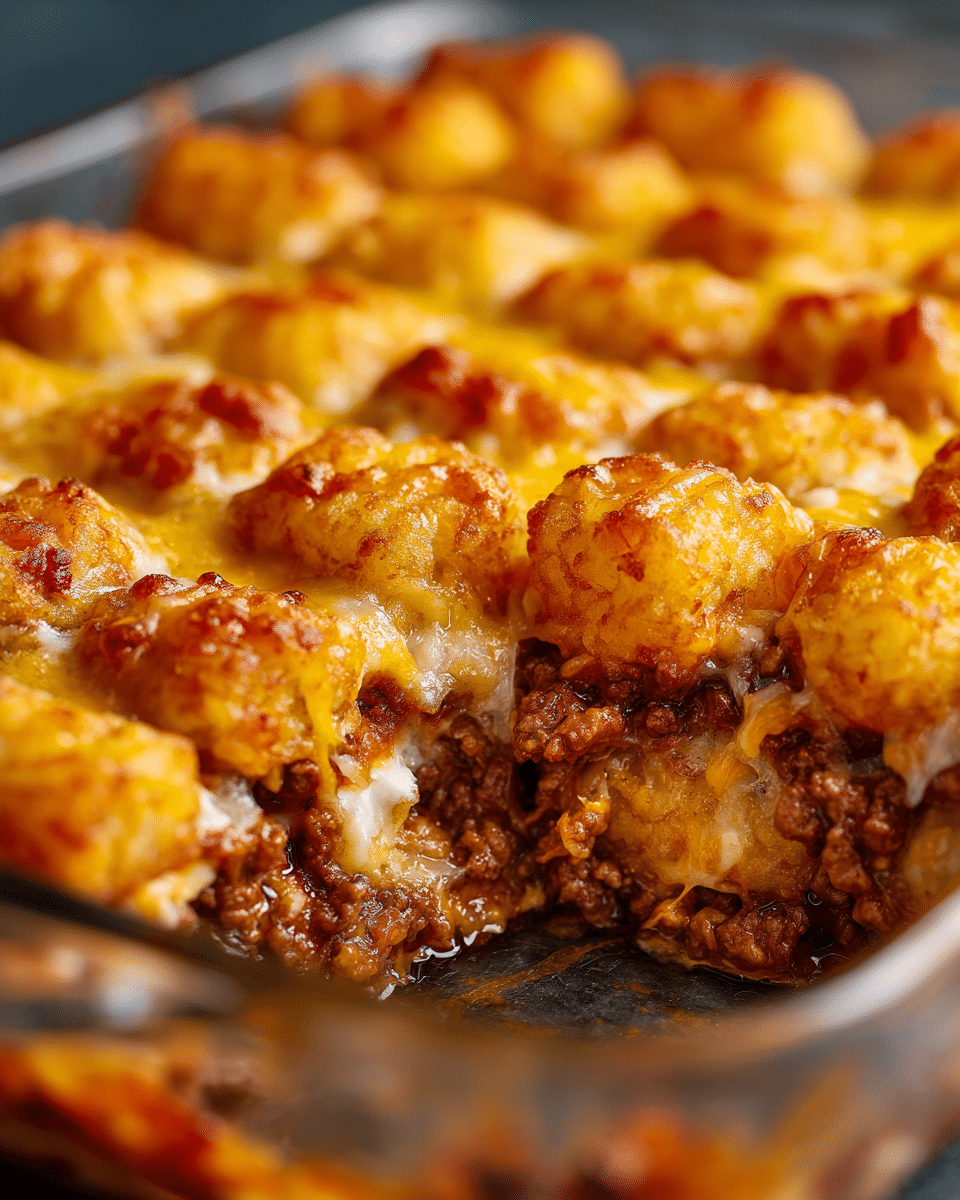 Bake uncovered for 35–40 minutes, or until the tots are crisp and the cheese is bubbling. For extra crunch, broil for 2–3 minutes at the end.