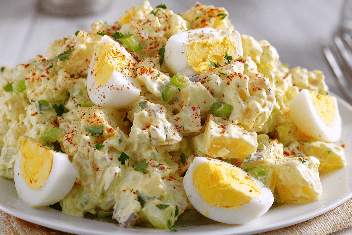 A creamy Southern-style potato salad made with tender potatoes, eggs, and a tangy mayonnaise and mustard dressing.