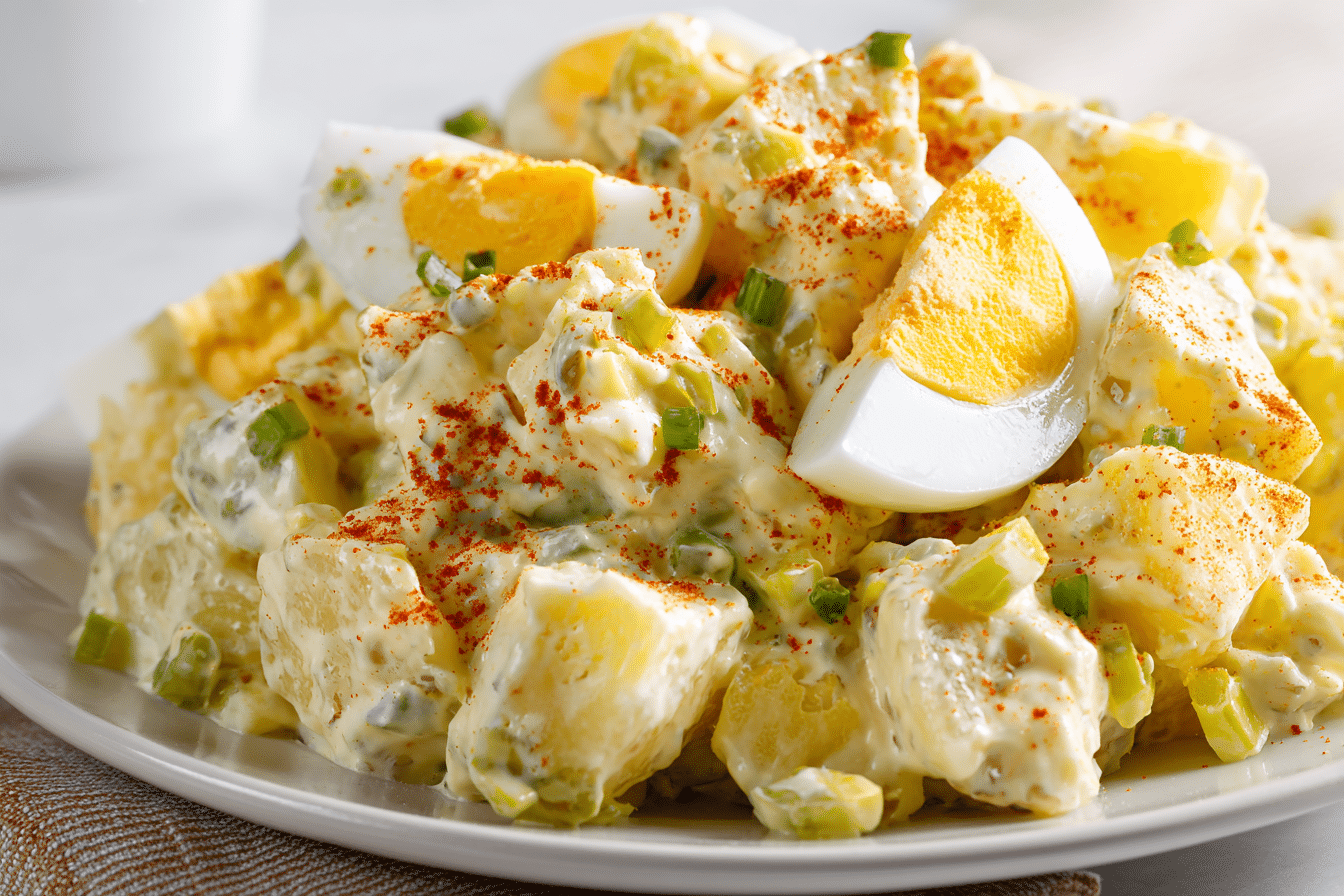 This version features tender potatoes coated in a creamy dressing made with mayonnaise, mustard, and a touch of acidity. The addition of chopped eggs, crisp celery, and a hint of onion brings texture and depth, creating a balanced dish that feels both hearty and refreshing.