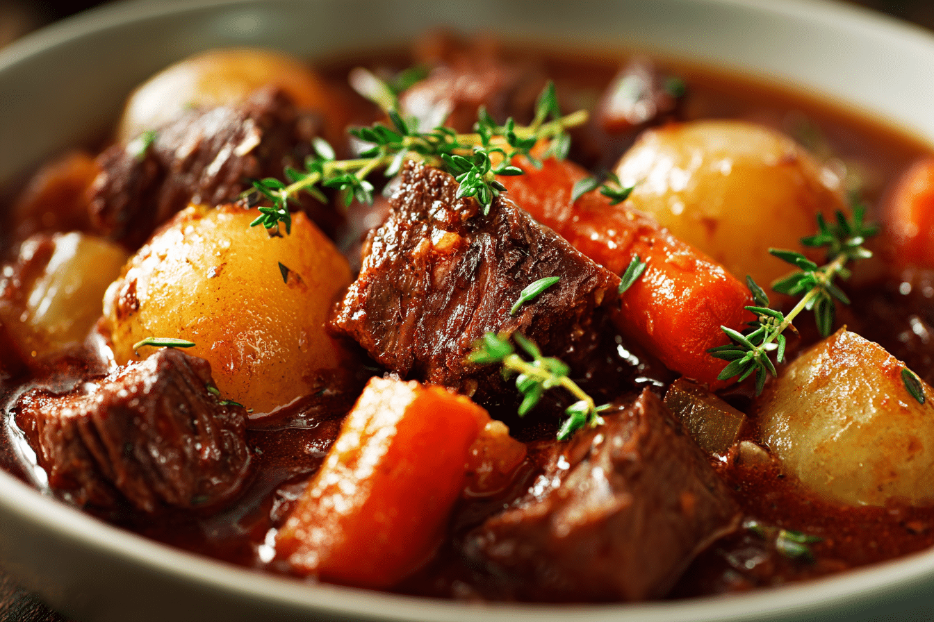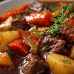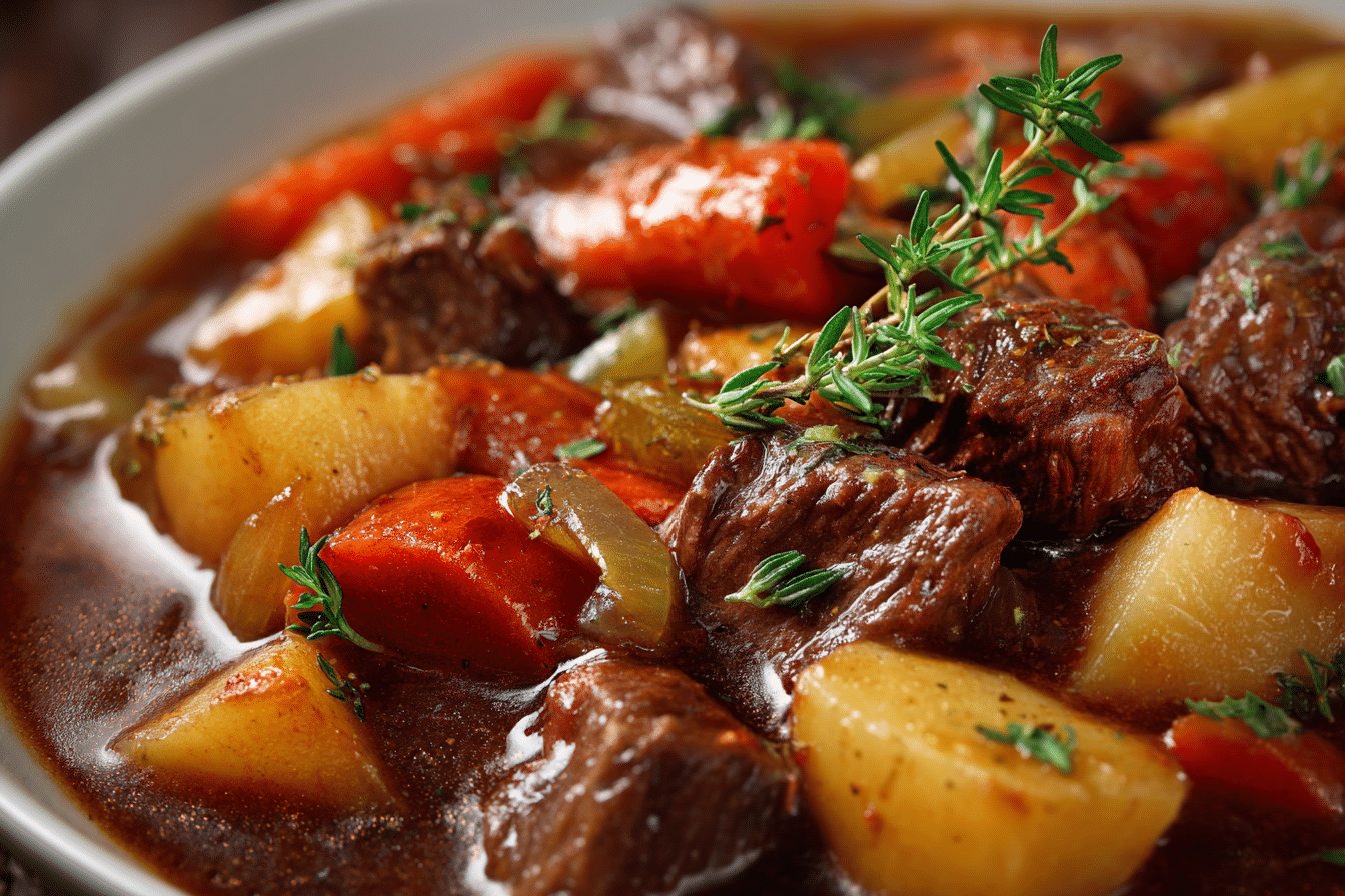A hearty and rich slow-cooked stew made with tender beef, root vegetables, and a savory broth—perfect for cozy nights and easy family dinners.