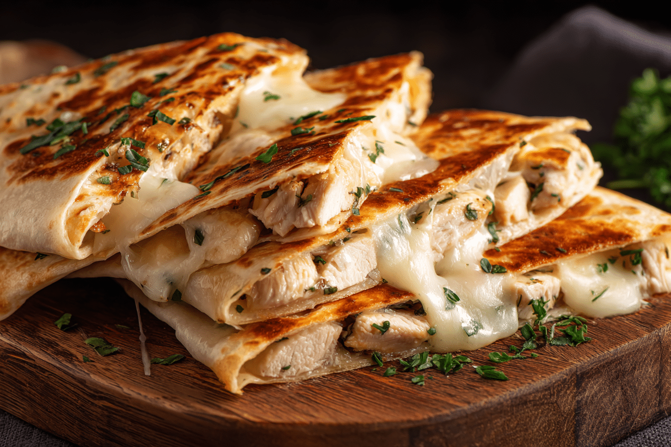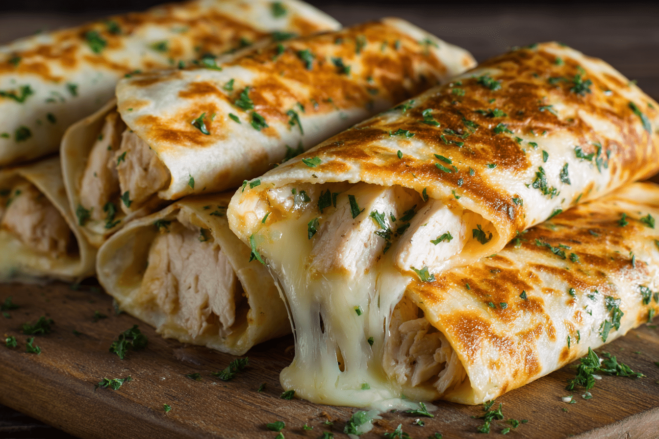 This recipe is ideal for busy evenings when you crave something hearty but still homemade. The chicken is seasoned simply, allowing the garlic and cheese to shine without overwhelming the dish. Once folded and lightly toasted, the outside turns lightly crisp while the inside stays creamy and flavorful.