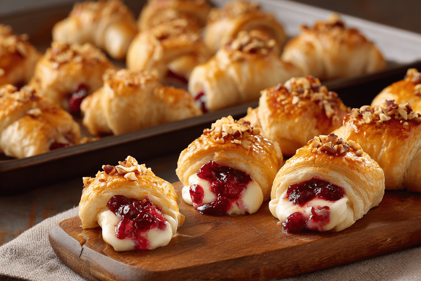The combination of tart cranberry and rich cream cheese wrapped in golden pastry makes them ideal for cozy winter gatherings or festive celebrations.