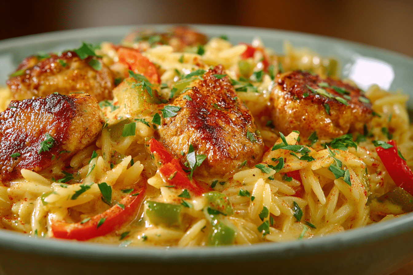 Creamy Cajun Chicken Orzo is a rich and satisfying dish that combines tender chicken, perfectly cooked orzo, and a bold, spiced cream sauce. It delivers the warmth of Cajun seasoning with a smooth, comforting texture that makes every bite feel hearty and flavorful.