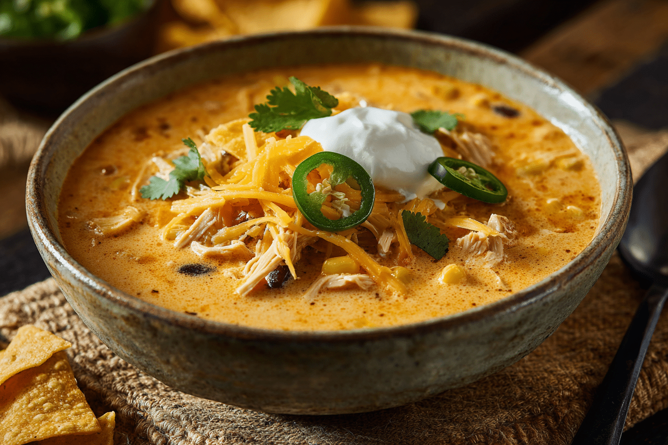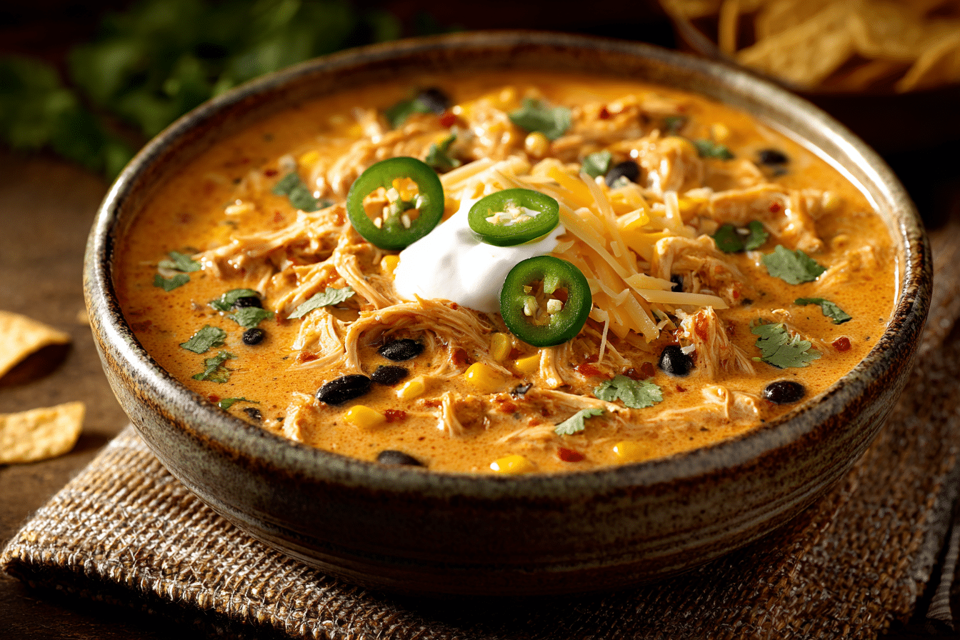 A rich, Tex-Mex-inspired soup featuring shredded chicken, creamy broth, bold enchilada flavor, and hearty add-ins like beans and corn. Perfect for chilly nights and family dinners.