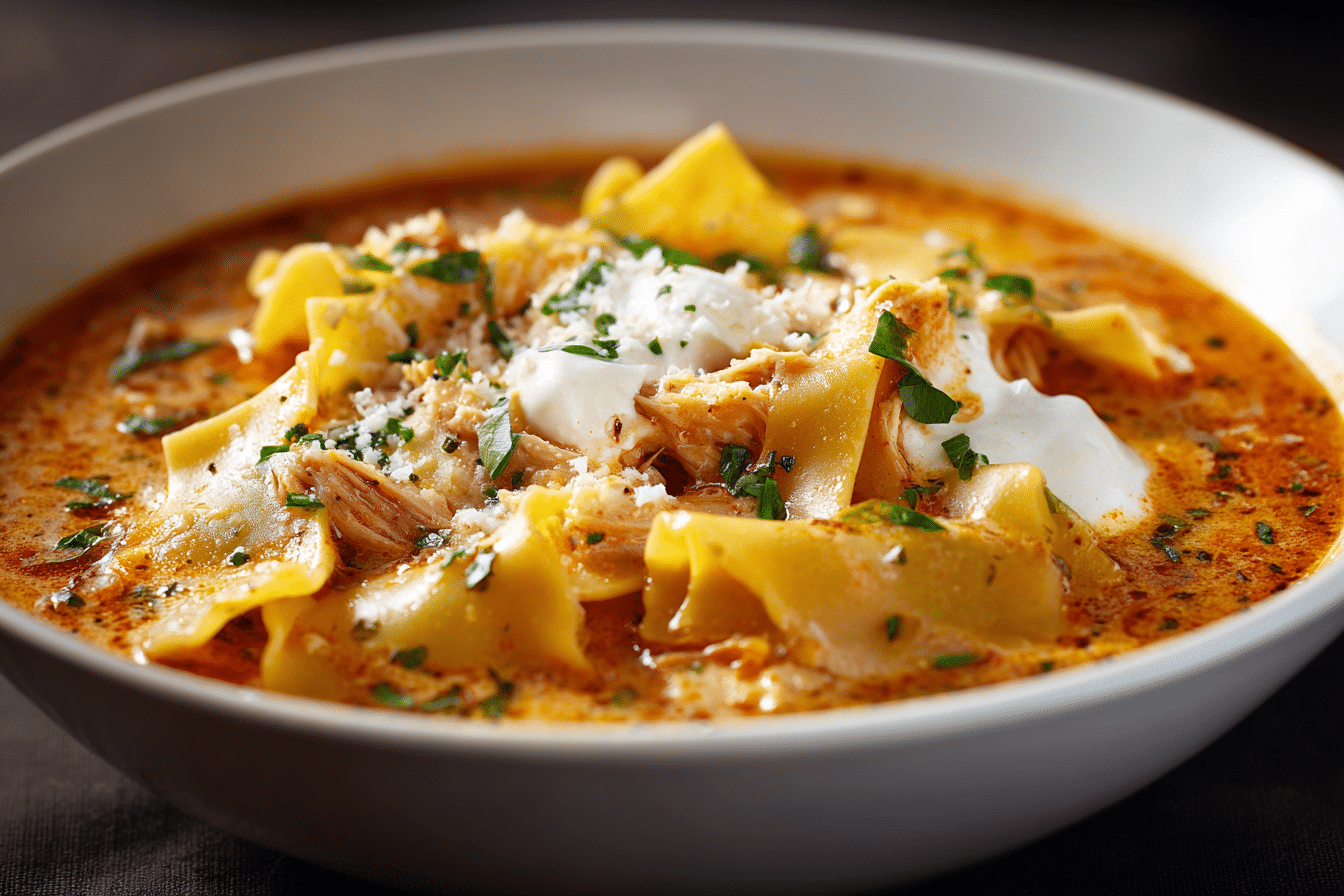 Creamy Lasagna Chicken Soup brings together the familiar flavors of lasagna in a warm, comforting soup made with shredded chicken, tomato broth, noodles, and a trio of cheeses. It’s a one-pot dinner that’s easy, satisfying, and full of flavor.