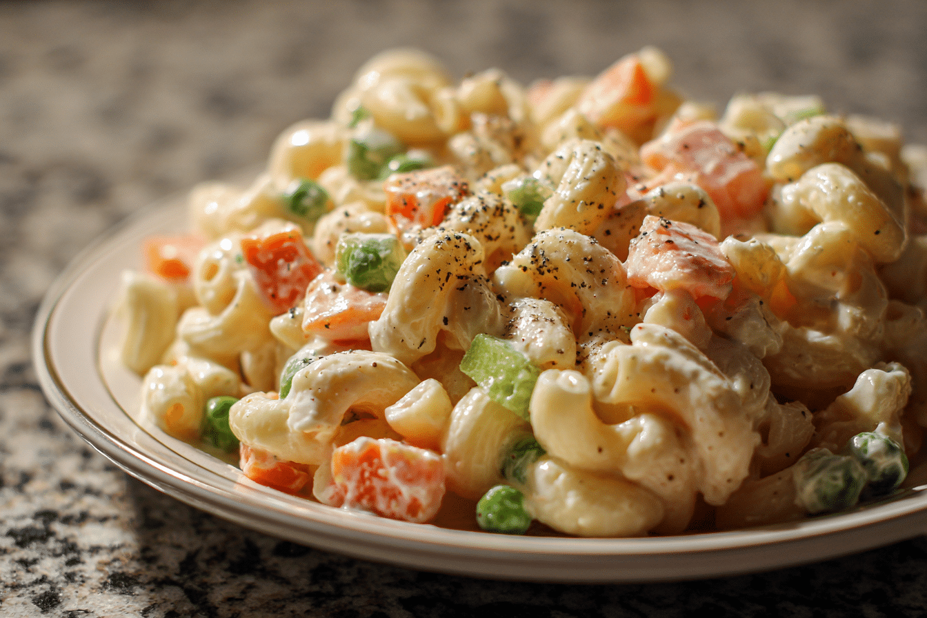 A classic creamy macaroni salad with tender pasta, crisp vegetables, and a smooth, tangy dressing perfect for any gathering.