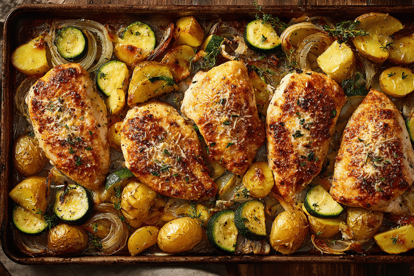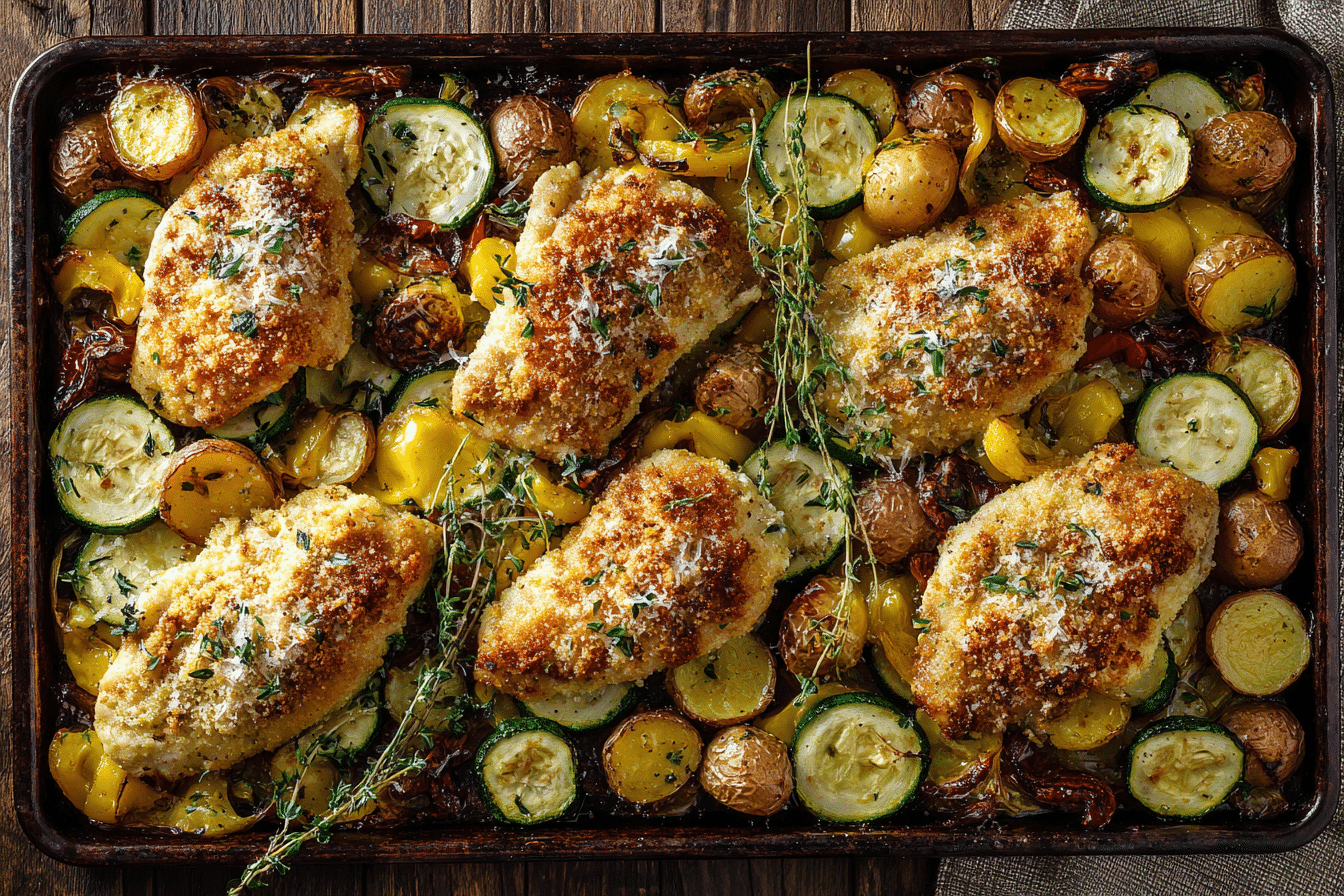 Busy weeknights demand meals that are simple to prepare, full of flavor, and easy to clean up. That’s exactly what this Crispy Parmesan Crusted Chicken Sheet Pan Dinner delivers. Golden, crunchy chicken with a savory cheese coating bakes to perfection on a single tray alongside vibrant vegetables, creating a balanced, mouthwatering dinner that’s ready in just 45 minutes.