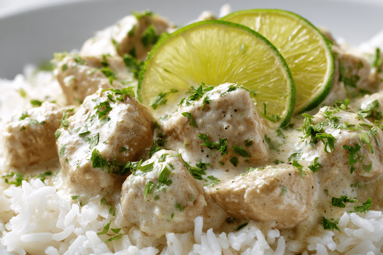 Jasmine rice is the most traditional pairing. The rice soaks up the coconut lime sauce while providing a light base for the tender chicken.