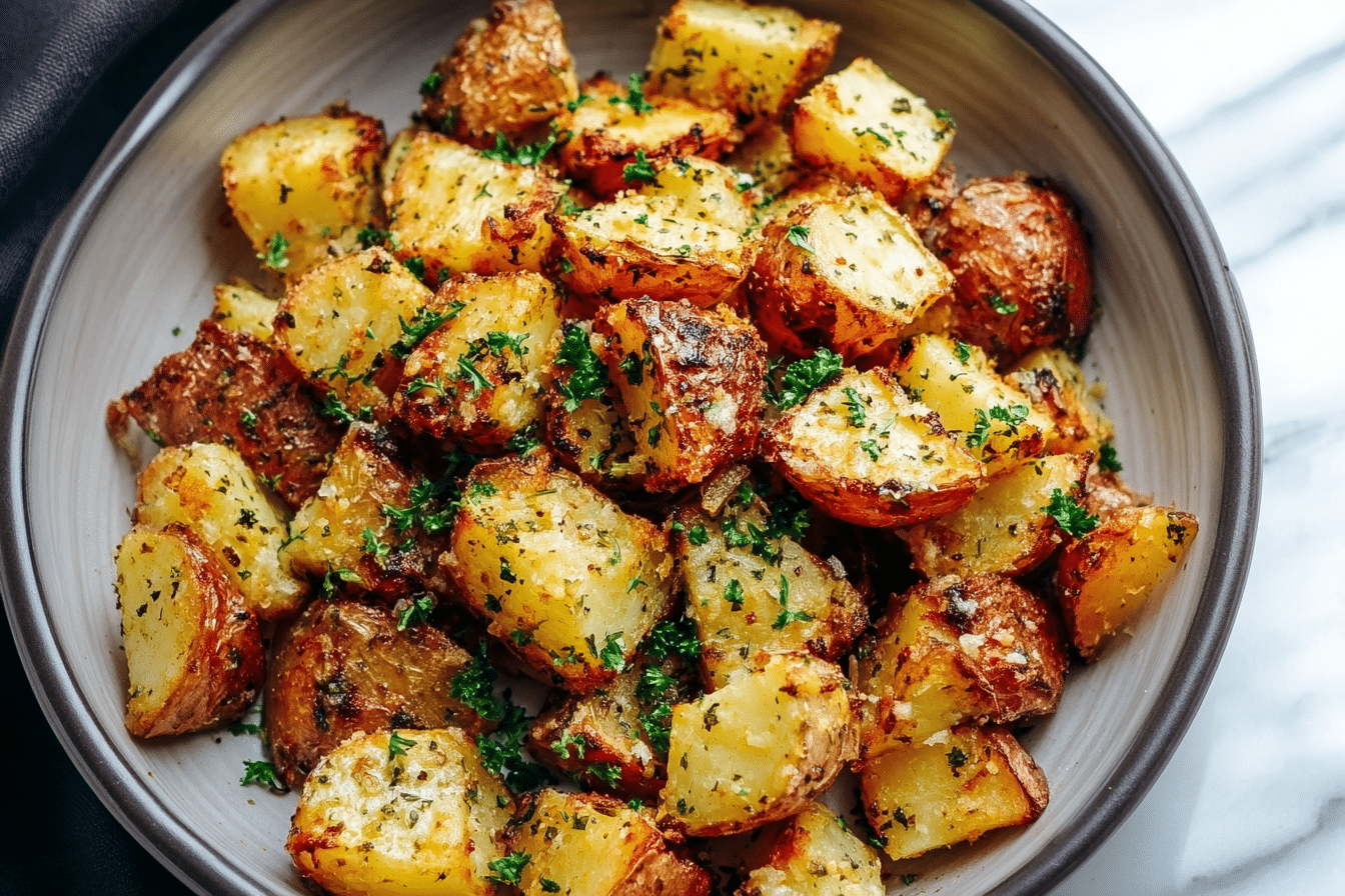 Once done, sprinkle fresh parsley over the potatoes before serving.