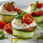 Cucumber Caprese Salad brings a crisp twist to the classic Italian tomato and mozzarella pairing. Fresh cucumber slices join juicy tomatoes, creamy mozzarella, and fragrant basil to create a bright salad that feels light yet satisfying. The clean flavors highlight simple ingredients arranged in a way that feels vibrant on the plate.