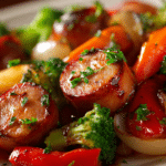 Easy One-Pan Honey Garlic Kielbasa & Veggies is a hearty meal that brings together smoky sausage, roasted vegetables, and a sweet garlic glaze in a single pan. The dish delivers bold flavor with minimal preparation, making it a convenient choice for busy evenings when a satisfying dinner is needed quickly.