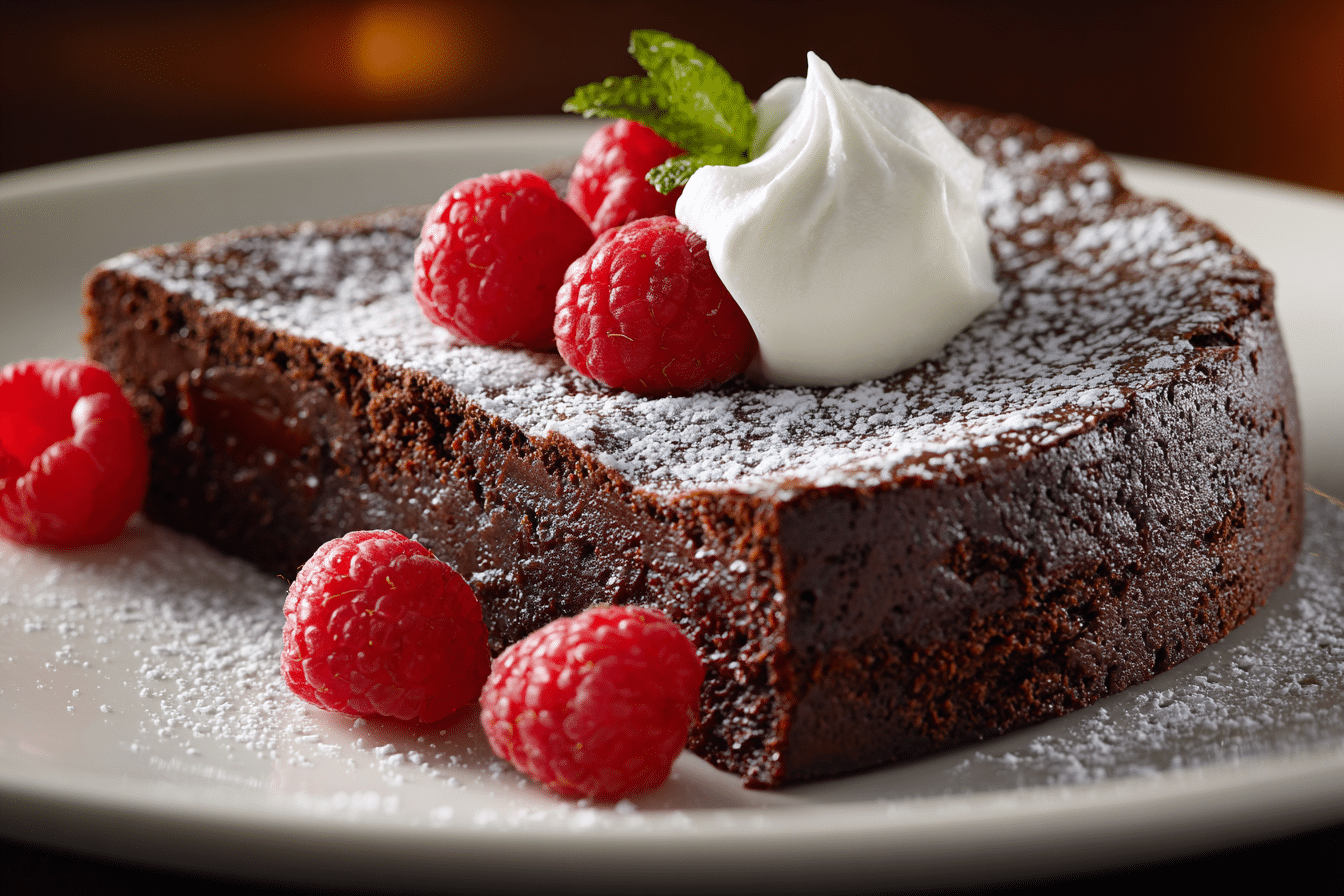 Flourless Chocolate Cake (Gluten-Free) is naturally suited for those avoiding gluten, yet it never feels like a compromise. The focus remains entirely on pure chocolate flavor, balanced sweetness, and a tender interior that melts gently on the palate.