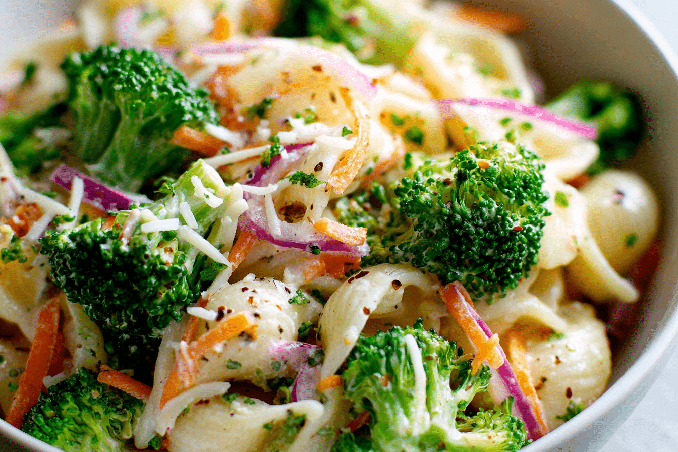 Fresh Broccoli Pasta Salad offers a balanced mix of carbohydrates, vegetables, and healthy fats.