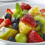 Fresh Fruit Salad with Honey-Lime Poppy Seed Dressing works wonderfully for brunch tables, summer gatherings, or light desserts. Because it requires no cooking and minimal preparation, it remains a convenient dish that still looks impressive when served.