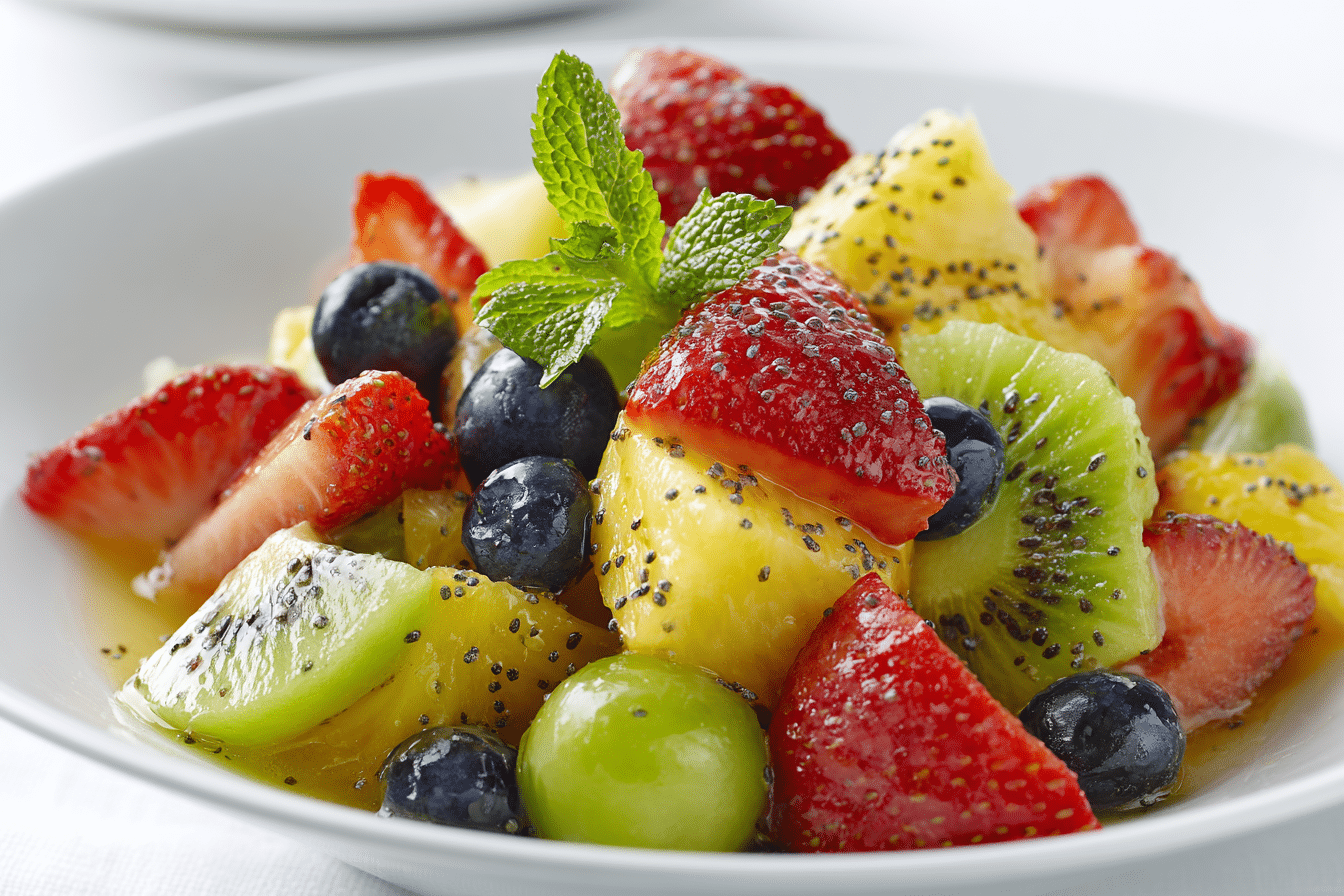 Fruits with firm texture work best because they hold their shape when mixed with dressing. Strawberries, grapes, blueberries, pineapple, and kiwi all perform well in fruit salads.