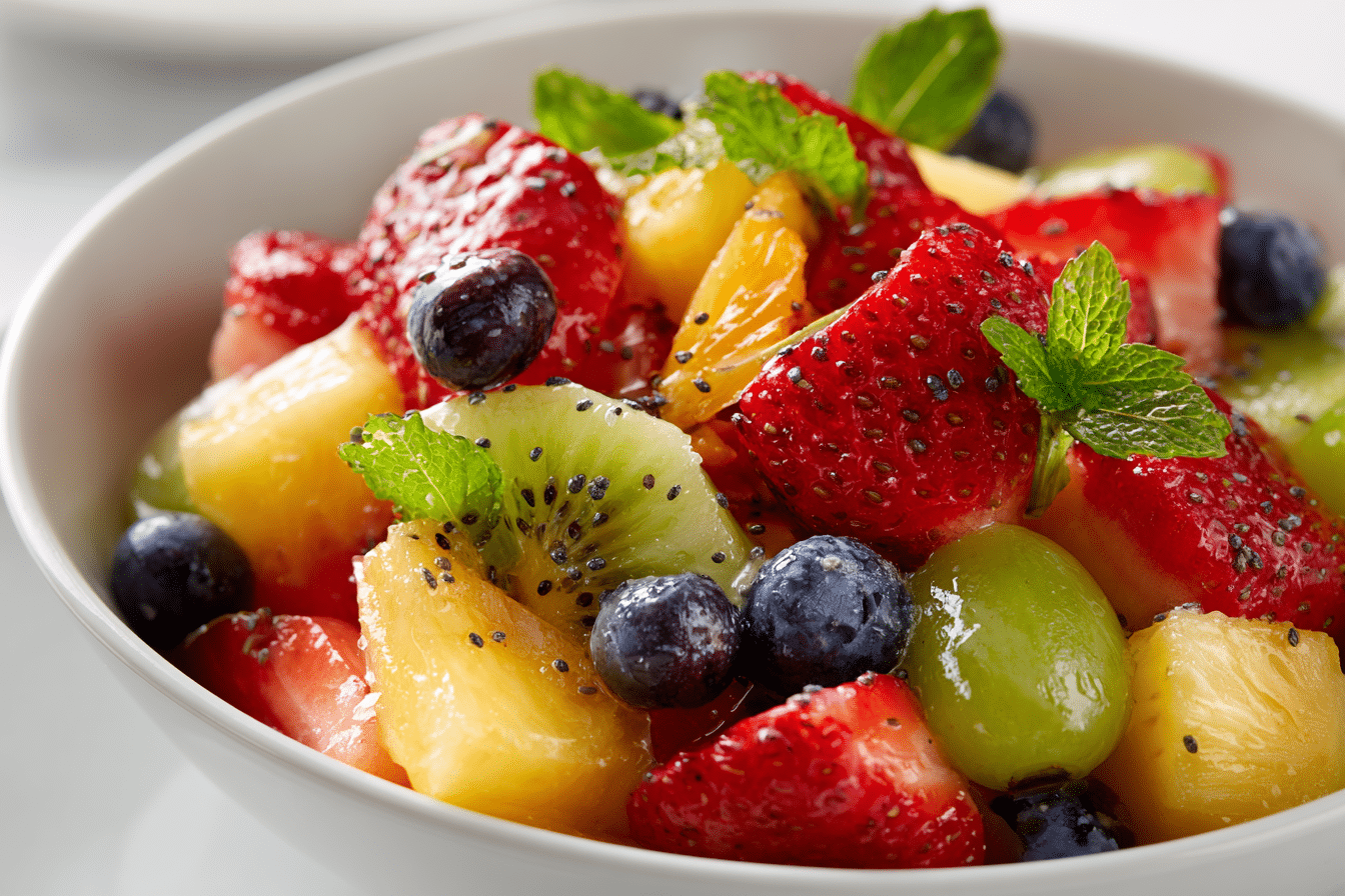 This salad celebrates the natural flavors of seasonal fruit. Juicy berries, sweet melon, and tropical fruit create a mix of colors and textures that feel lively and refreshing. The honey-lime dressing lightly coats the fruit rather than overpowering it, allowing each ingredient to keep its individual character.