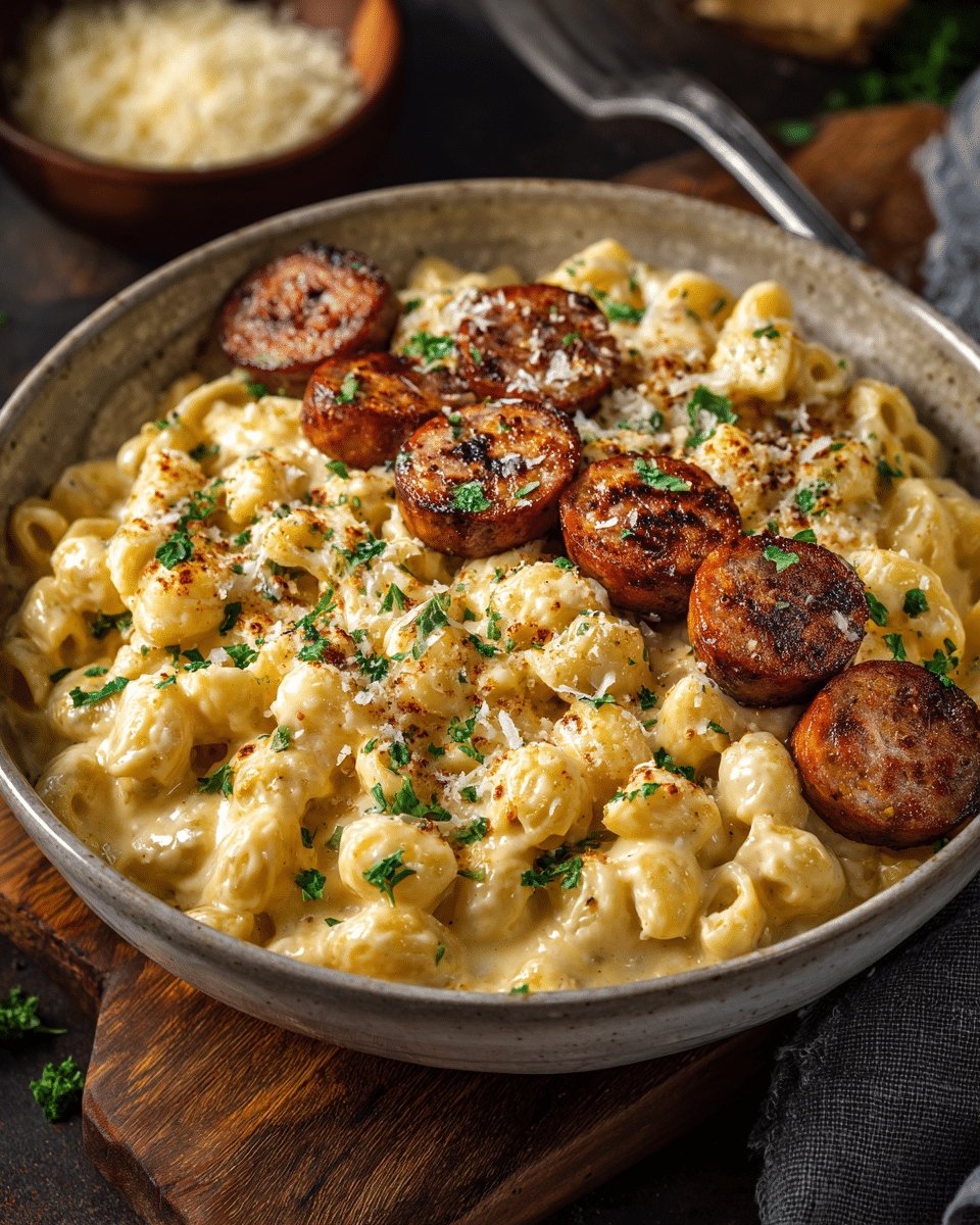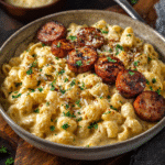 This recipe combines the best of two comfort food worlds: savory, sizzling sausage and velvety, cheesy pasta. It’s a one-pan wonder that’s easy enough for weeknights yet impressive enough for entertaining. The garlic butter elevates every bite, while the creamy pasta wraps around the sausage like a warm hug.