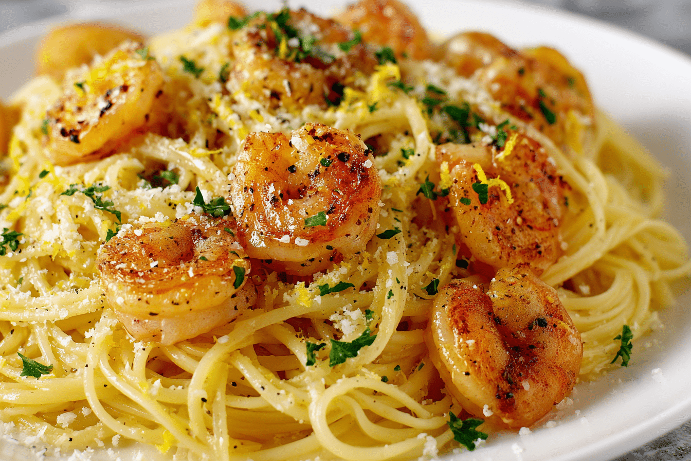 In this pasta, shrimp cook quickly in a buttery garlic mixture that forms the base of the sauce. A splash of lemon juice adds freshness, while pasta water helps create a light coating that clings to every strand of pasta.