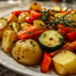The beauty of Garlic Herb Roasted Potatoes and Veggies lies in its balance of textures. The potatoes develop a golden crust while staying soft inside, and the vegetables roast to bring out their natural sweetness. A blend of garlic, herbs, and olive oil ties everything together into a savory, satisfying side dish that pairs well with almost any main course.