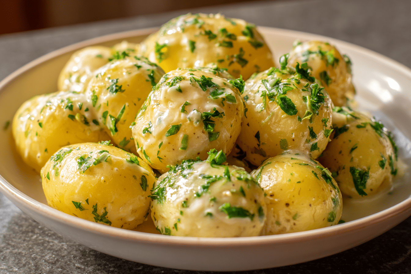 Garlic Sauce Baby Potatoes are a rich and comforting side dish that combines tender, bite-sized potatoes with a smooth, flavorful garlic sauce. The potatoes are cooked until perfectly soft, then coated in a creamy, aromatic mixture that clings to every surface.