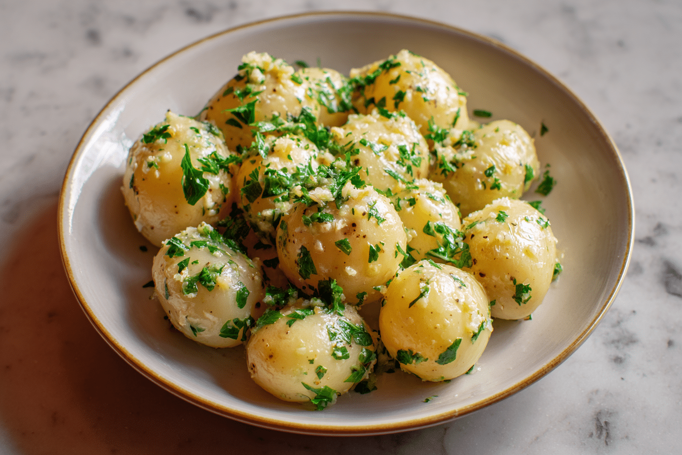 Garlic Sauce Baby Potatoes are tender potatoes coated in a creamy garlic and Parmesan sauce for a rich and satisfying side dish.