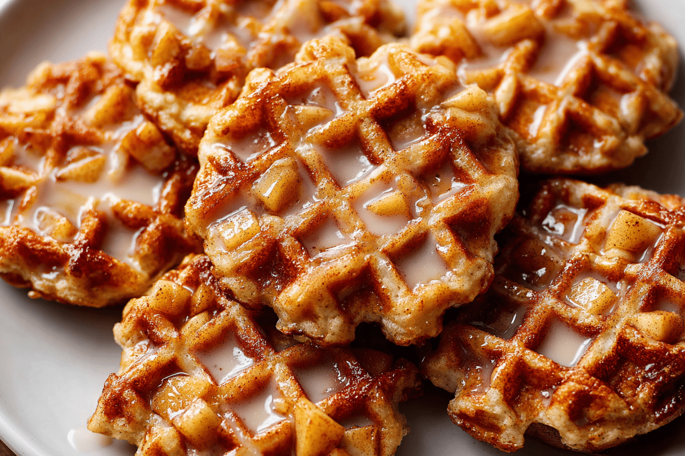 Soft waffle donuts filled with spiced apples and topped with a silky vanilla glaze — a cozy, no-fry twist on the classic apple fritter.
