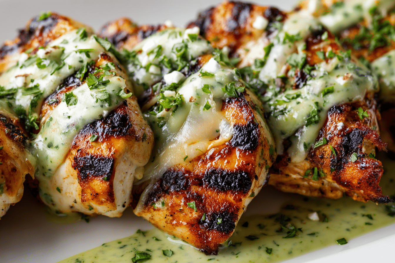 The combination of roasted green chili sauce, garlic, and smoky grilled chicken creates a vibrant main dish that works for both casual weeknight meals and outdoor gatherings. As the chicken cooks over steady heat, the salsa verde lightly caramelizes on the surface, forming a flavorful coating.