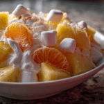 It’s a familiar favorite at potlucks, family dinners, and warm-weather gatherings, thanks to its simple preparation and refreshing taste. The mix of pineapple, mandarin oranges, and other fruits creates a balance of sweet and tangy notes, while Cool Whip adds a smooth texture that ties everything together.